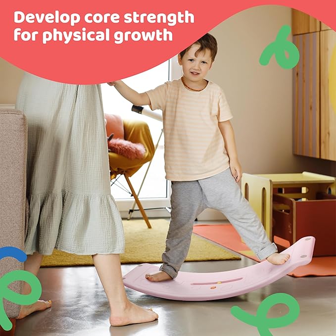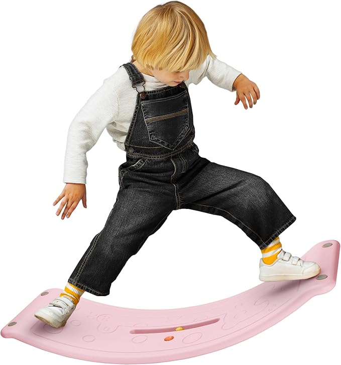 Dazmers Balance Board - Plastic Wobble Board for Improving Balance - Rocker Curvy Board - Balance Trainer Board for Yoga and Overall Fitness - Balancing Toys for Children and Adult - Pink