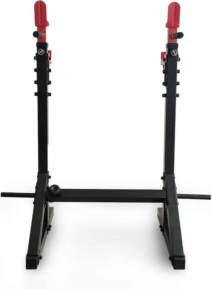 - Adjustable uprights - adjust from 41.8 to 60 inches High (7 adjustment stops) | Safety catches (4 adjustment positions)