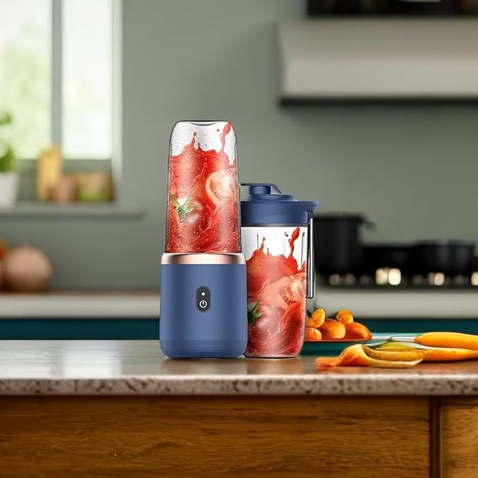 Paramexview® Portable Blender 14oz for Juices & Smoothies with 6 blades Puwerful performances Fusion Blender | USB Rechargeable, Lid, Cup included | Fit for travel and outdoor activities (Navy Blue)