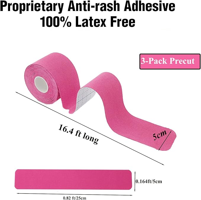 - 【Pre-Cut Strips】kinesiology tape for knees is extremely convenient with pre-cut 60 strips (3Rolls)No cutting tools or scissors is needed. No need for messy cutting with long, uncut rolls of tape. 5m length and 5cm wide (enough length and width can make you more convenient to use) professional grade and does not irritate skin.