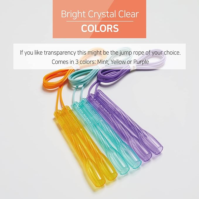 - Mild Transparent Colors - If you like transparency this might be the jump rope of your choice. Comes in 3 colors: Green, Pink or Sky Blue.