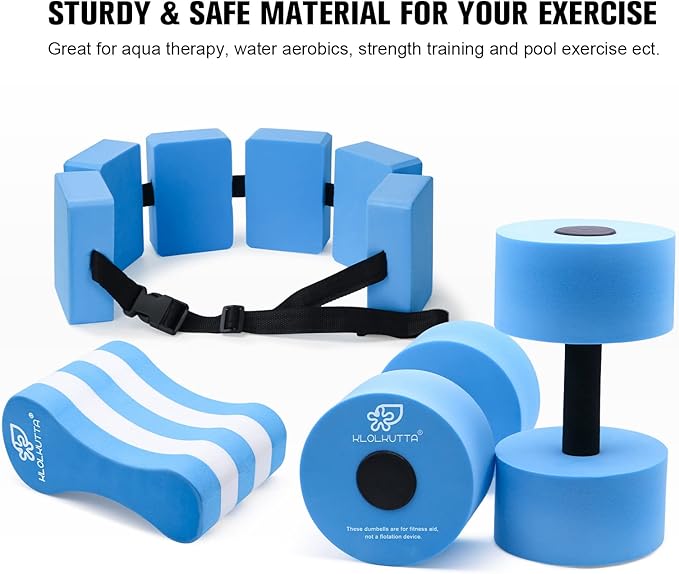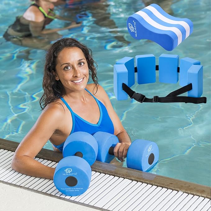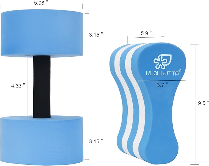 - AQUATIC EXERCISE EQUIPMENT: There are two pieces water dumbbells, and one pull buoy, and one swimming belt. You can enjoy the whole pool exercise system this summer.
