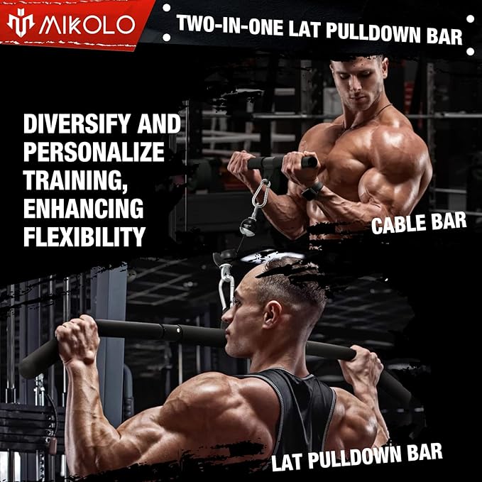 - [Easy to Assemble and Versatile] Mikolo Upgraded cable pulley system set with hanging straps and carrying bag is effortless to assemble and portable, making it easy to set up in your home gym, garage, training studios, or any place where the strap can be installed. The LAT and Lift Pulley System can connect to power racks, squat racks, pull-up bars, beams, and any other compatible surfaces, providing great versatility for your workout routine.