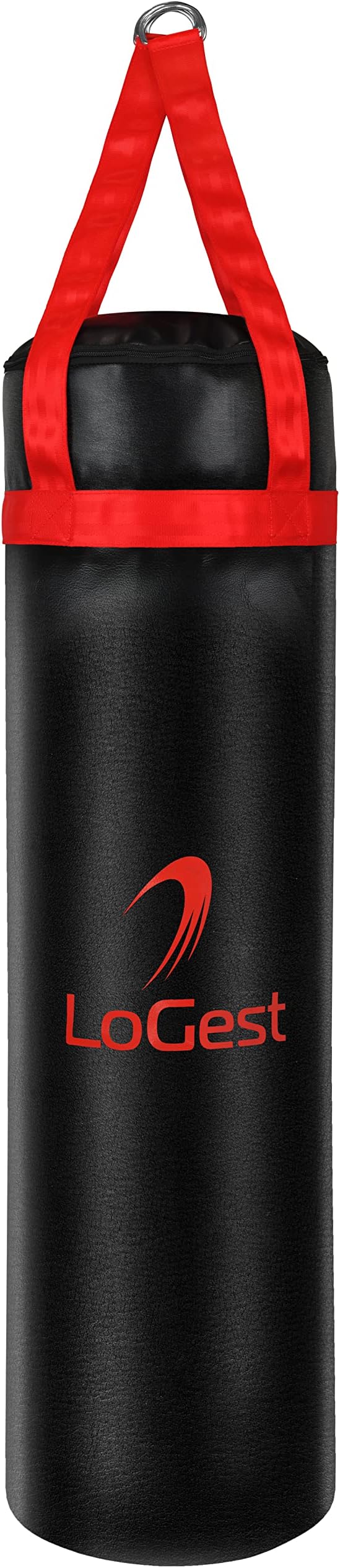 - Durable Construction: Designed to ensure great workout sessions for years to come, the LoGest Boxing Heavy Bag is expertly crafted of PU leather with attached heavy-duty, hanging nylon webbing straps – furnished in red or black – using reinforced stitching.