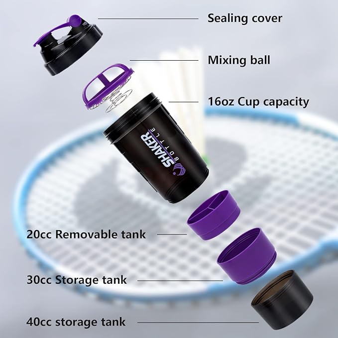 - 【Multifunctional Design with Compartments】 These shaker bottles have a 22oz capacity ( measurement markings up to 16oz) and three detachable extra compartments. They are great for taking protein powder, vitamins, and pills ,ideal companion for mixing protein shakes, smoothies, and supplements before or after workouts.