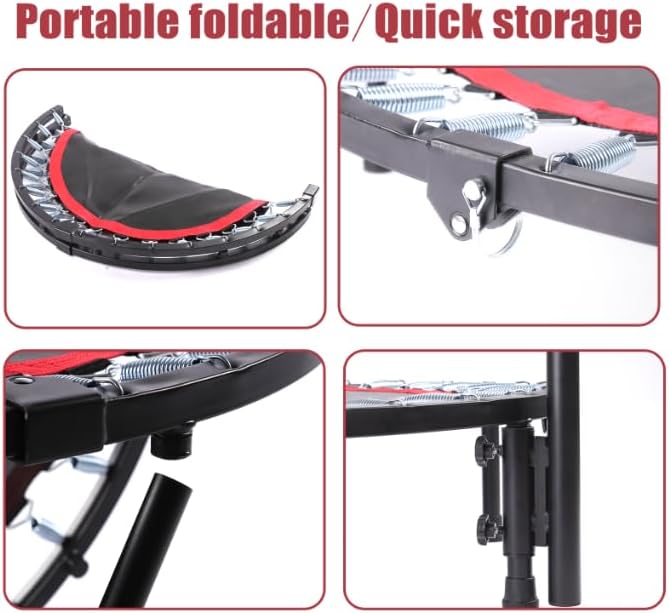 - 【Ultra-Quiet Foldable Design - Fits Any Space】Patented foldable frame folds to 1/4 size in 30 seconds – stash under beds, in car trunks, or apartment closets. Quiet rubberized springs + noise-dampening mat make it ideal for indoor late-night workouts without disturbing downstairs neighbors.