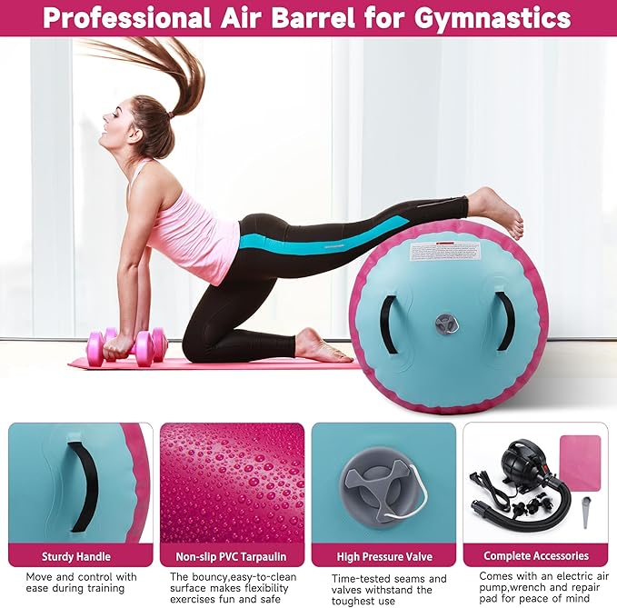 Air Barrel - Air Roller Gymnastics Barrel for Back Handspring Trainer, Air Track Tumble Mat with Pump for Gym Training/Yoga Balance Exercise/Cheerleading/Home and Outdoor Use