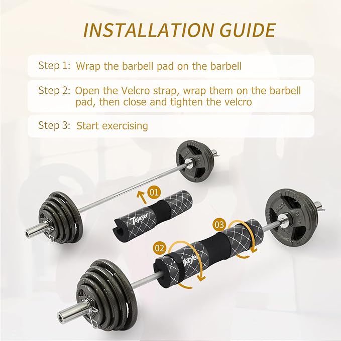 - 🏋 MULTIPLE APPLICATION - Tojayer workout pad is suitable for 1" to 1.125" standard barbell bar, Olympic barbell bar, Smith machine and most other barbell bar. It will bring your weight lifting to the next level both for men and women. It's also an essential accessory for your leg day. Ideal for assisting in P90x, powerlifting weightlifting, yoga, Insanity, Pilates, and beach body workouts.