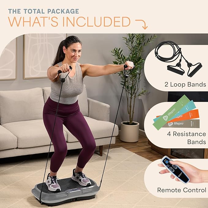 - Home Workout Equipment for Oscillation Movement - Through oscillation movement, the Lifepro Waver Vibration Plate Exercise Machine improves muscles, energy balance, circulation, and reduces joint tension. Get started with everything you need, including 2 loop bands, 4 resistance bands, remote control, and user guide. Easily stows away under your bed or furniture.