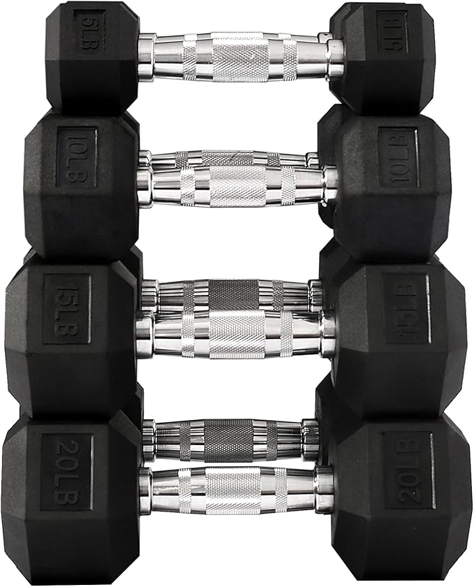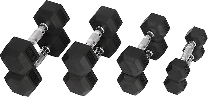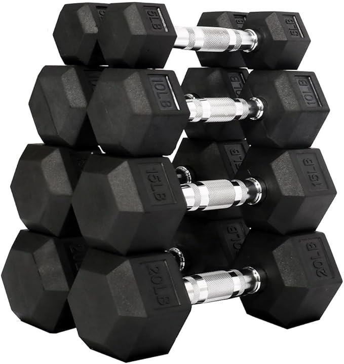 Premium Rubber Coated Hex Dumbbell Weight Set, Multiple Packages