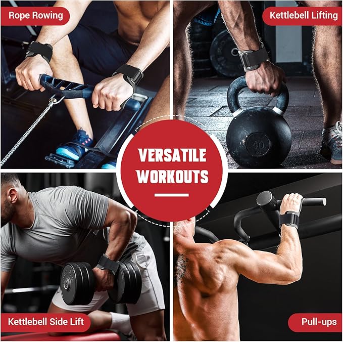- Perfect fitness partner: Wrist workout straps are great for weightlifting, strength training, bodybuilding, pull-ups, hard pulls, shrugs, barbell rowing and upright rowing. Not only is the cow suede sweat-wicking and non-slip, but it is also constructed to last and resist up to 480 lbs without tearing. The wrist straps weighs only 0.5 pounds, so you can carry it with you, using it at home, in the gym or in the outdoors.