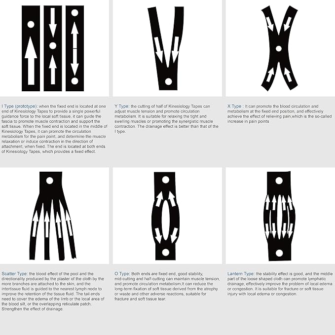 - LATEX FREE - The fabric is backed with an adhesive made from a hypoallergenic, medical-grade acrylic that is flexible, comfortable and non-irritating to most skin types. The tape is latex-free and does not contain any medications or topical ingredients.IDEAL injury prone areas such as Knee, Shoulders, Achilles, Shin Splints, Rotator Cuff, ITB, Quads, Hamstrings, Lower and Upper Back, Neck and Much More.