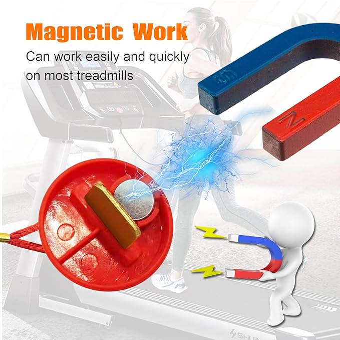 - Treadmill safety key: magnetic work, can work easy and quick on most treadmills requiring a round treadmill safety key. It can easily clamp to any part of your clothing and it's strong to hold.Easily clips to virtually all types of clothing so you can forget about the key while you walk or run