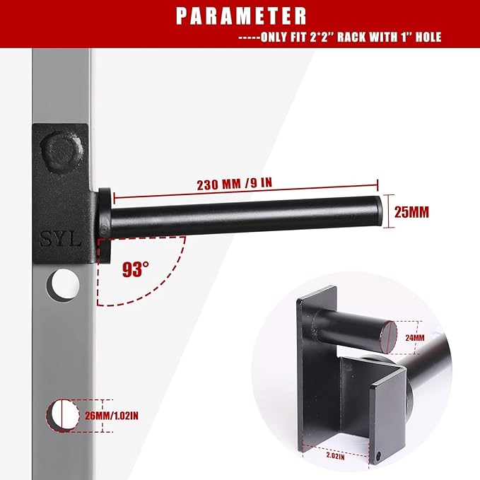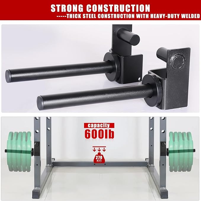 - 💪EASY TO USE - Easy to insert and lock-in design, just slide pin into power rack's hole and swing down to lock in place. This smart design makes it more convenient for loading and unloading the weight plates