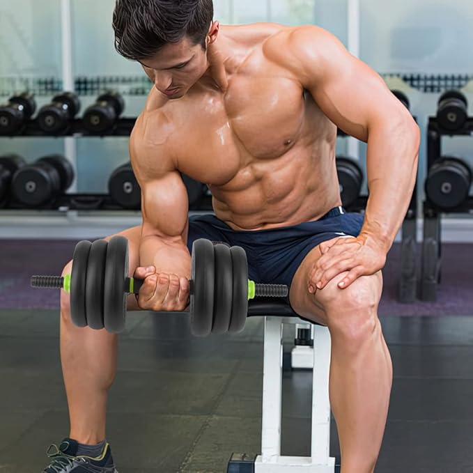 - 【WHAT YOU GET】:4 x 2.5lbs counterweight, 4 x 3.5lbs counterweight, 4 x 4.5lbs counterweight, Dumbbell Bar x 2, Barbell Connector x 1, Kettlebell Rod x 1, Push-Up Handle x 2, Circlips x 6. If you have any questions, please contact us and we will definitely provide you with satisfactory service.