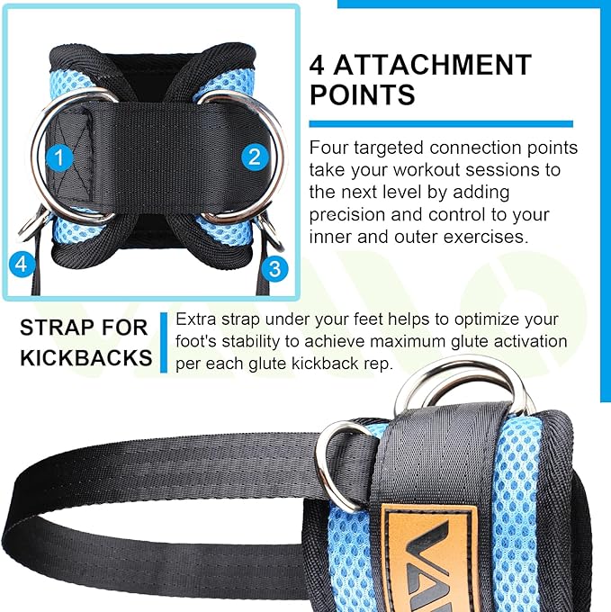 - ARTIFACT OF SPORTS BUFFS: These unique ankle straps will give you the legs of your dreams. Simply wear them and connect them to the cable machine, exercising your thighs, glutes, hips, hamstrings and calves through D-rings around the ankle. Let your legs get a full range of motion, the leg will be more muscular and slimmer!