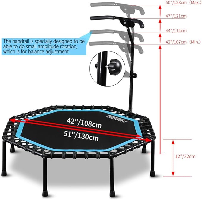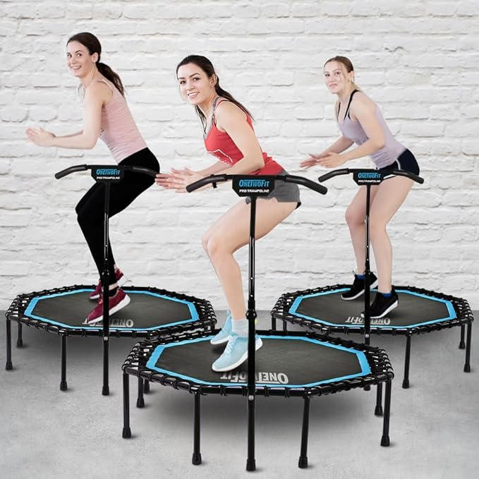 ONETWOFIT 51" Silent Trampoline with Adjustable Handle Bar, Fitness Trampoline Bungee Rebounder Jumping Cardio Trainer Workout for Adults…