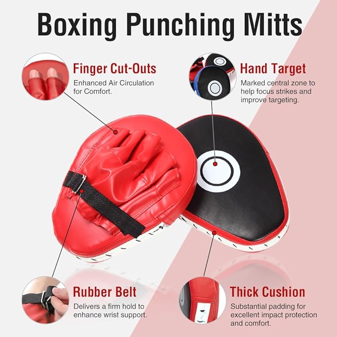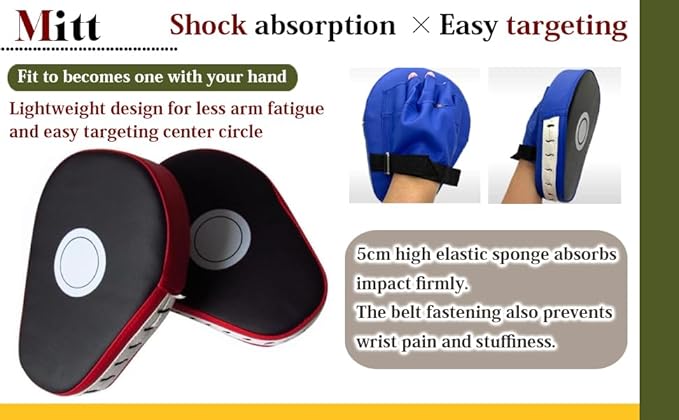 - 【COMES WITH MITTS】- Enhancing your punching technique requires cooperation from your training partner. Our punching mitts are lightweight and ergonomically curved for a comfortable, responsive hit. With a thickness of approximately 5cm, they provide an ideal balance of impact absorption and ease of use. The circular target at the center ensures precise aim, preventing punches from straying. Elevate your training sessions with mitts designed for effective and enjoyable workouts!
