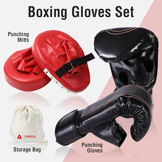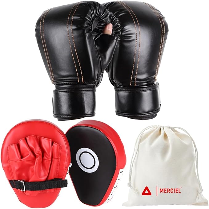 MERCIEL Pro Training Boxing Gloves and Boxing Punching Mitts for Adults – Comprehensive Boxing Set Adult Men and Women for Training, Muay Thai, MMA, Kickboxing, and Heavy Bag Work