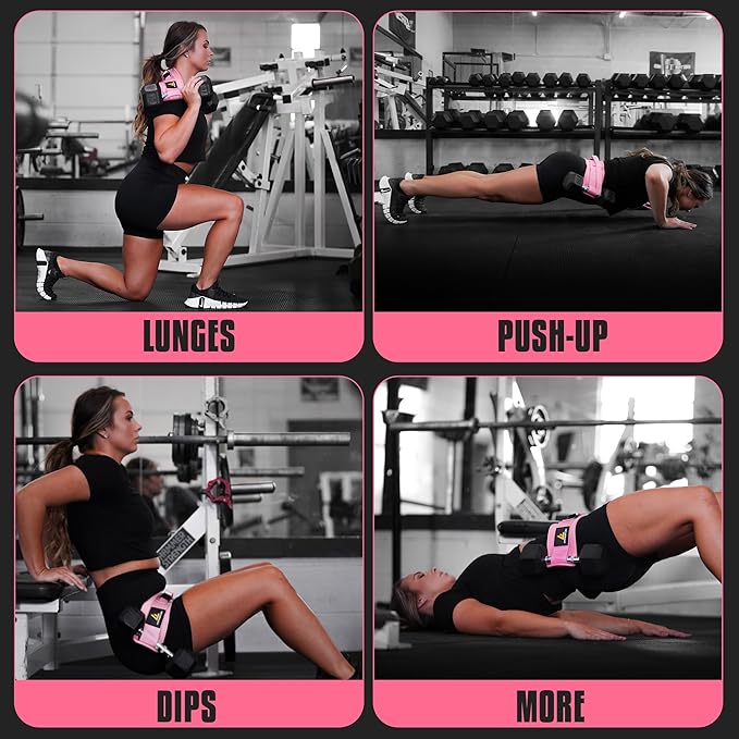 - Suitable for Both Men and Women: Our hip thrust belt is designed to accommodate a wide range of body types and sizes. It's suitable for both men and women, allowing everyone to enjoy the benefits of targeted glute training. Add weights to the hip thrust belt for squat, lunges, glute bridges, dips, reverse hyper extensions, and more. Our belt can be used as a hip thrust belt for dumbbells, kettlebells, plates, or any type of weight.