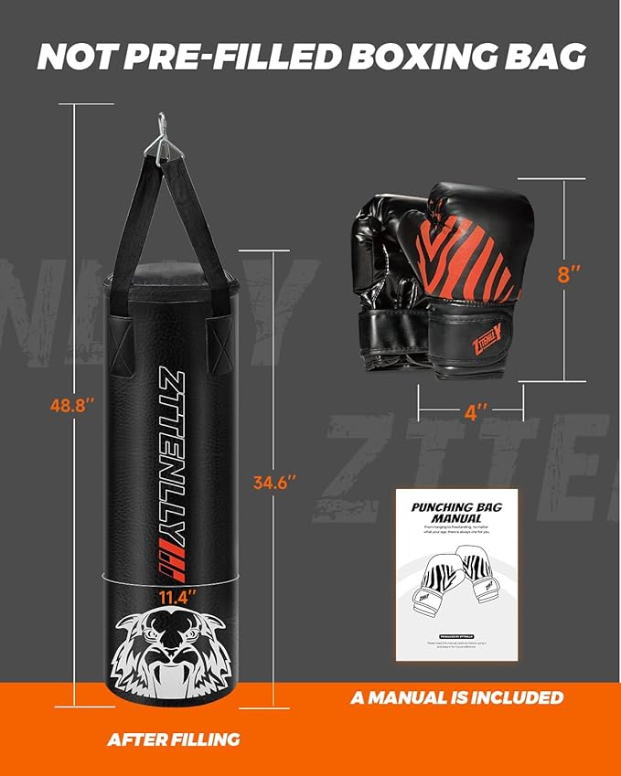 - UNFILLED: our punching bag comes unfilled to carry and store easily. Need your filling, the filling preferably no more than 90lbs. You could fill it with used old cloth/blankets/sheets/insulation etc.