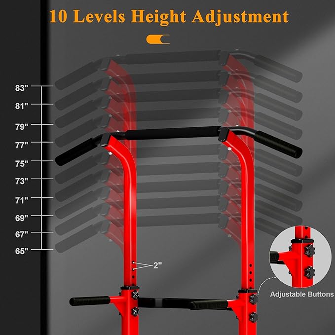 - [Product Dimension]💪 - 32.3Lx29.5Wx65~82.7H(inches). Maximum weight capacity: 330LBS, The height of pull up bar can be adjusted from 66.5~82.7". It can be easily placed in a home gym, garage, or even a small apartment, making it an ideal choice for those with limited space.