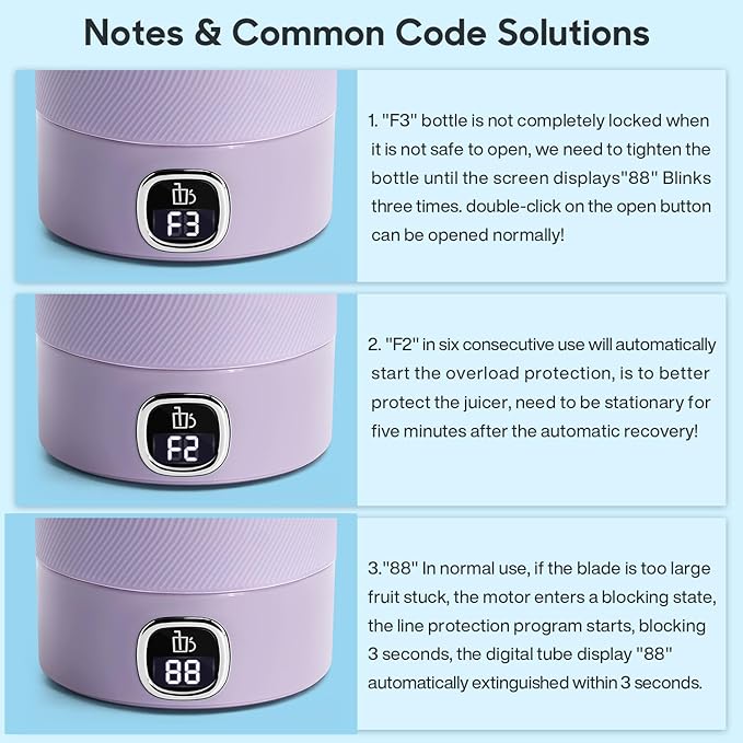 - 🍇Best Design: USB tepyC fast charging, equipped with 3000mAh capacity rechargeable battery, stronger power, while upgrading the LED display, 30S countdown fast juicing + power display, 3-5 hours can be fully charged, fully charged state can produce 15-20 cups of freshly squeezed juice, it is the good ideal portable juicer for home, office, travel, sports