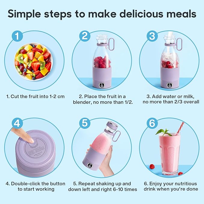 - 🥝Best Quality: Travel blender are strictly selected for quality! more rugged and durable, and has a silicone bottom, non-slip, shock-absorbing, waterproof design for double protection and BPA Free.