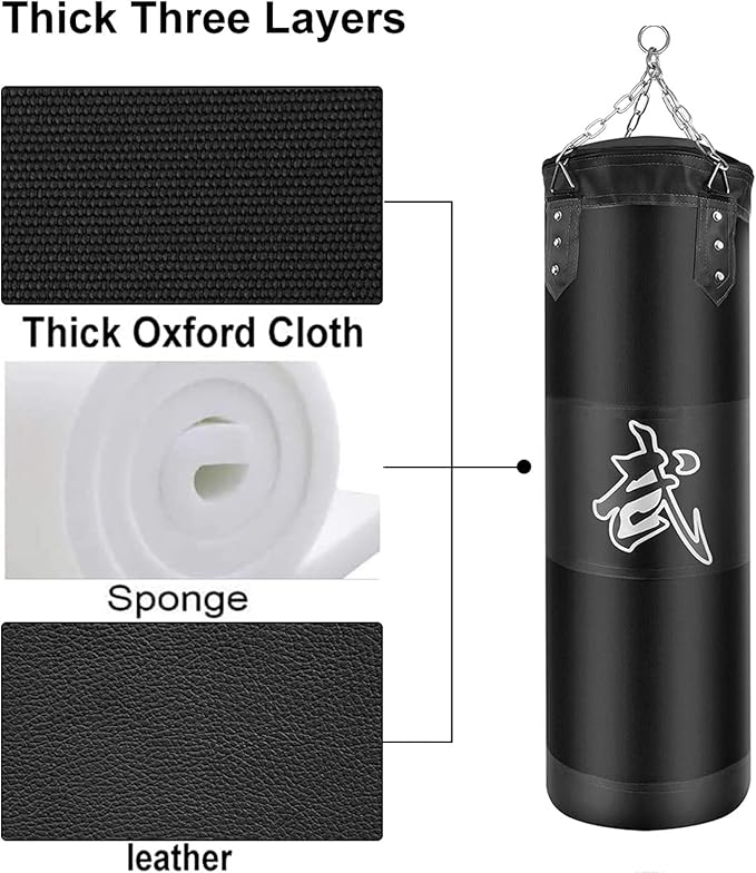 - 【WHAT YOU WILL GET】: This punching bag set includes 1 x 100cm empty punching bag, 1 x 4-pannel steel chain, 1 x connecting carabiner, 1 x boxing bag hanger, 1 x expansion screw hook, 4 x expansion screw, 2 x Wrist band. It's the ideal choice for your family or kids to boxing and do Martial Arts, Muay Thai, Karate, Taekwondo, etc. workouts