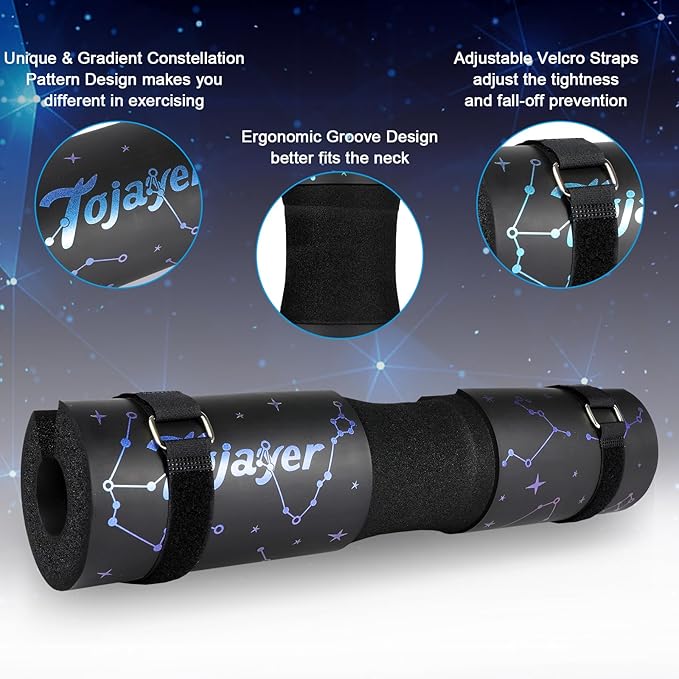 - 🏋 HIGH DENSITY MATERIAL - Tojayer barbell neck pad is constructed with high-density and high-resilience material, absorbing all shocks for increased comfort and reduced injury during deep movements such as squats, lungs and hip thrusts, and workout easily. For all your favourite butt and leg exercises, including hip thrusts, squats, lunges and more.