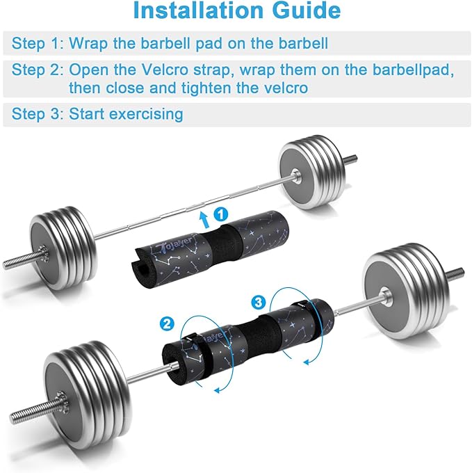 - 🏋 MULTIPLE APPLICATION - Tojayer workout pad is suitable for 1" to 1.125" standard barbell bar, Olympic barbell bar, Smith machine and most other barbell bar. It will bring your weight lifting to the next level both for men and women. It's also an essential accessory for your leg day. Ideal for assisting in P90x, powerlifting weightlifting, yoga, Insanity, Pilates, and beach body workouts.