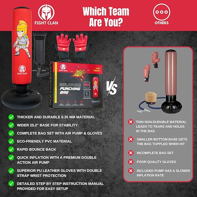 - 👊【DURABILITY GUARANTEED】: With increased thickness from standard 0.25mm to 0.35mm and passing rigorous testing with 10,000 punches, this kids punching bag assures no tears or holes, withstanding repeated punches and kicks. Featuring double-layered sealing and high-quality seams, it is water and air-leakproof, guaranteeing top quality and durability.