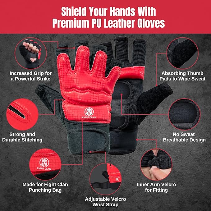 - 🥊【PROTECTIVE PUNCHING GLOVES】: Fight Clan’s gloves are lightweight, breathable, and padded for maximum comfort. Featuring double wrist straps for a secure fit and extra knuckle padding, they offer superior protection against hand injuries during play.