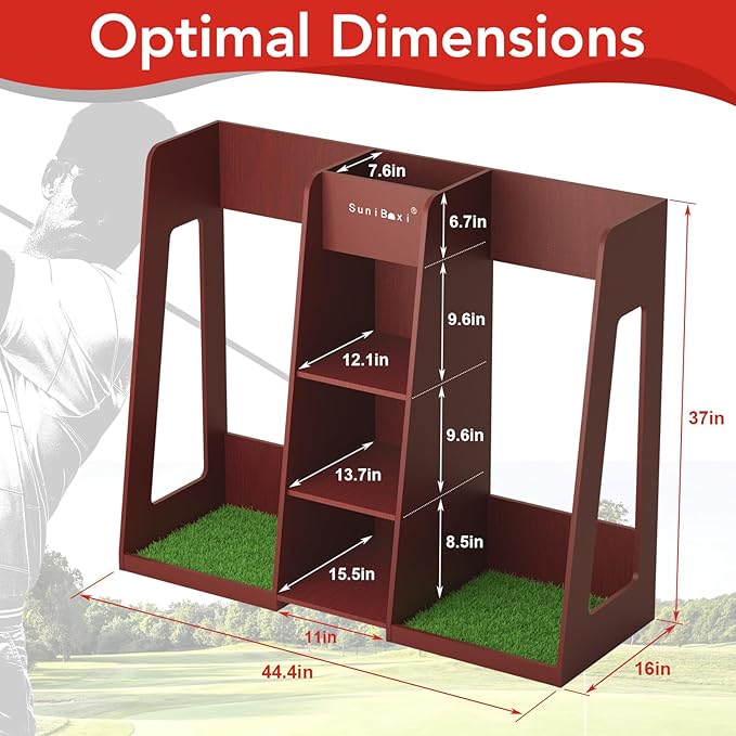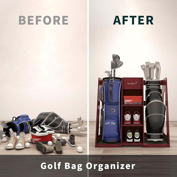 - Golf Gifts for Men: Compared to metal storage cabinets, the golf storage organizer made of high-quality wood can protect your golf clubs, preventing scratches and marks. Additionally, it comes with a lawn, providing an extraordinary visual delight whether placed in the garage, at home, or in the office.