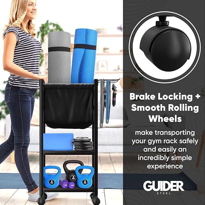- GLIDE ACROSS ANY SURFACE and then lock the two wheels of our home gym storage organizer when you find the perfect spot. With this feature, you won't have to worry about your indoor gym equipment moving on its own