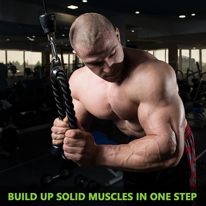 - Build Bigger, Stronger Muscles - Transform your triceps, arms, back, abs, glutes and more with double d row handle and tricep rope attachments. Max out your muscles with triceps pushdowns, tricep rope cable pressdown, seated rowing and more, perfect for both workout at home and gym