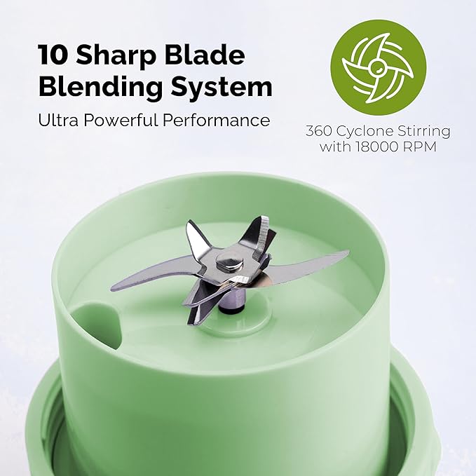 - Crushing Performance: The BlendQuik protein shake single-serve blender isn't just for smoothies and protein shakes; This portable blender for smoothies features a powerful 10-blade blending system that easily crushes ice, and even spices, turning your cooking experiences into flavorful adventures