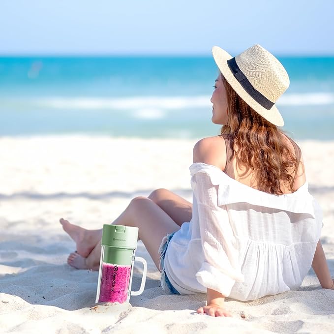 Personal Portable Blender For Shakes & Smoothies, Leakproof & Stylish Portable Mason Jar Shaker, Rechargeable Mini Blender with 10-Blade Blending System 14oz, Green