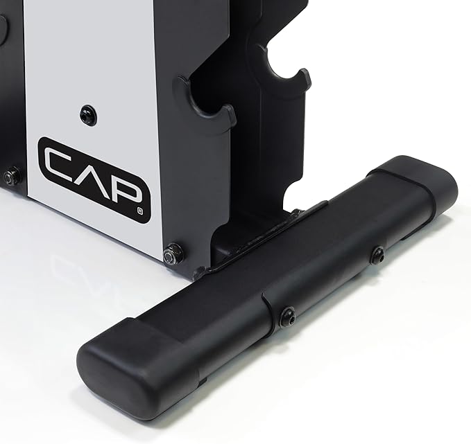 - Holds 210 pounds - Designed to hold 6 pairs of CAP Bbarbell hex or rubber hex dumbbells ranging from 5 to 30 pounds; Mix and match your dumbbells to fit this rack, up to 35 pounds pairs; Some combinations may not fit