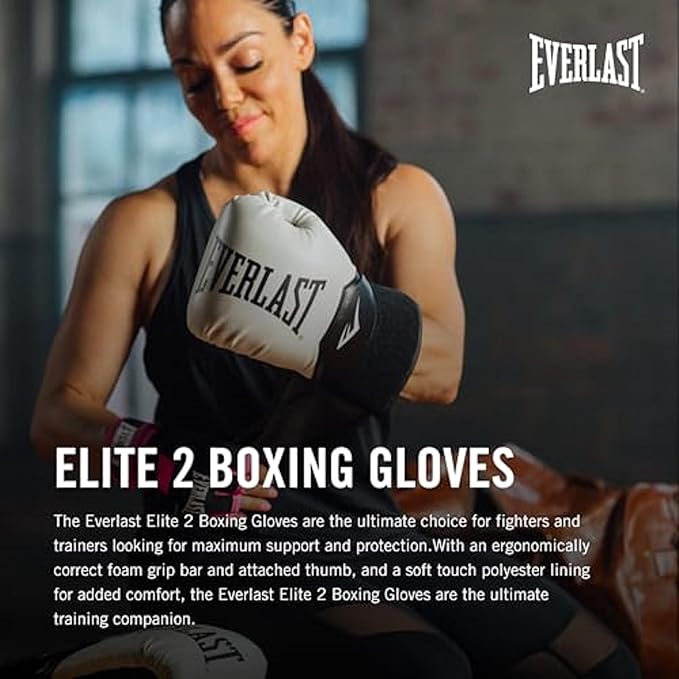 Everlast Elite 2 Boxing Gloves, Pro Training Gloves for Men and Women, Secure Fit Hook and Loop Closure & Ventilation, Heavy Bag & Speedbag Training.