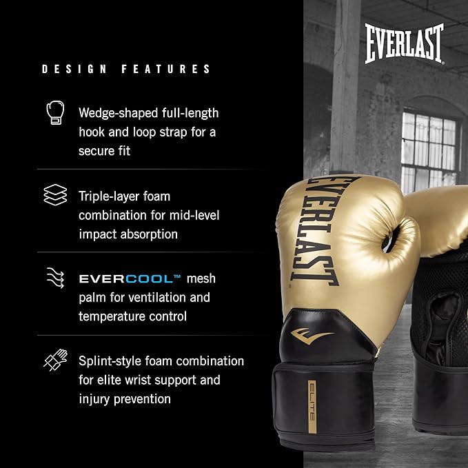 Everlast Elite 2 Boxing Gloves, Pro Training Gloves for Men and Women, Secure Fit Hook and Loop Closure & Ventilation, Heavy Bag & Speedbag Training.