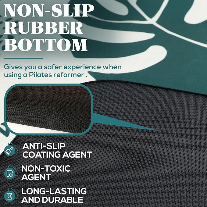 - NON-SLIP RUBBER BOTTOM: The bottom of our Pilates mat for reformer is covered by a layer of anti-slip coating, which is long-lasting, non-toxic, and invisible. The anti-slip coating agent increases the grip between the Pilates reformer mat and the surface, giving you a safer experience when using a home Pilates reformer or gym Pilates reformer.