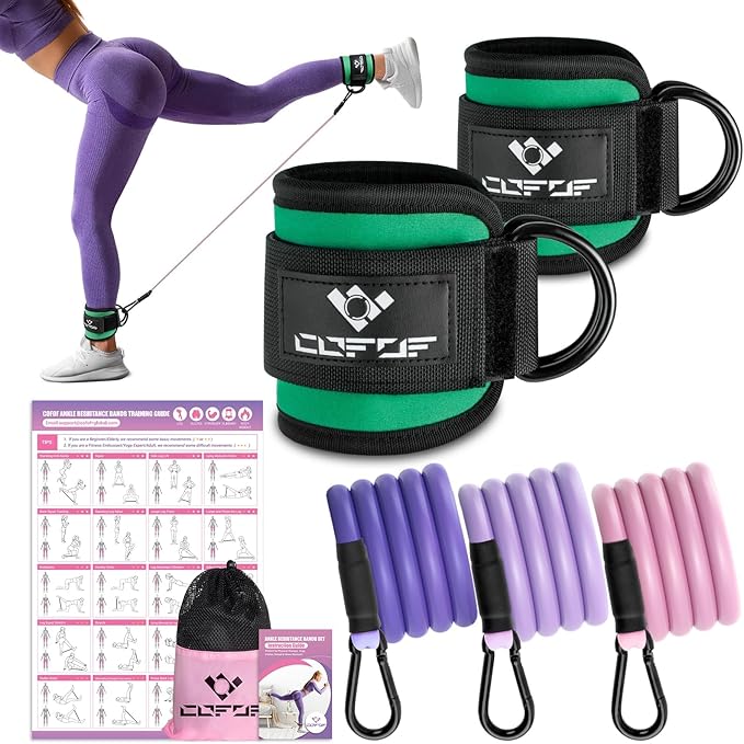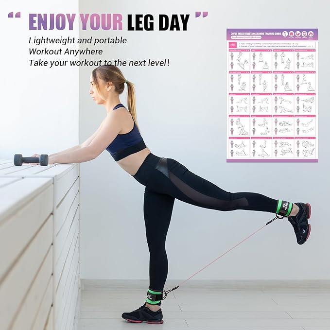 - [MULTIFUNCTIONAL RESISTANCE BANDS WITH ANKLE STRAPS] Our resistance bands for working out women can shape the perfect buttocks and legs, are an ideal choice for kickbacks, hip adduction and abduction, leg mountain climbers or lunges. What a perfect alternative to glute workout equipment. Say goodbye to boring workouts and hello to a diverse range of ankle-supported exercises that will make you feel like a fitness superstar.