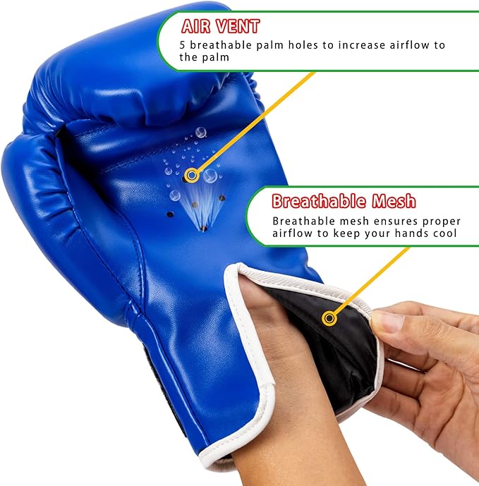- 【CAREFUL PROTECTION】One piece design of the back and wrist of the glove, thickened thumb and plump fist peak carefully protects your kids' hands in all directions.Kids Boxing Gloves Has A Thumb-Lock Feature Which Prevents Thumb To Touch Hitting Surface Preventing Injuries To Thumb.
