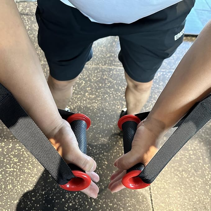 - Package includes 2 exercise pull handles and 2 stainless steel link buckles. Available in black and red.