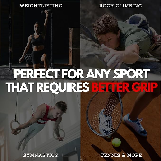 • KEEPS HANDS DRY - Our zero-slip formula is designed to eliminate sweat, keep your hands dry, and provide you with ultimate grip. Whether you're lifting heavy, swinging from bars, or scaling a climbing wall, we've got you and your hands covered. Literally.