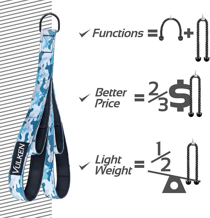 - Increase Range of Motion: Traditional triceps ropes are too short and limit your ability to open up the shoulders fully for exercises like the face pull. Vulken Dual length triceps straps with its 37 inches length allows you to extend your range of motion to the max.
