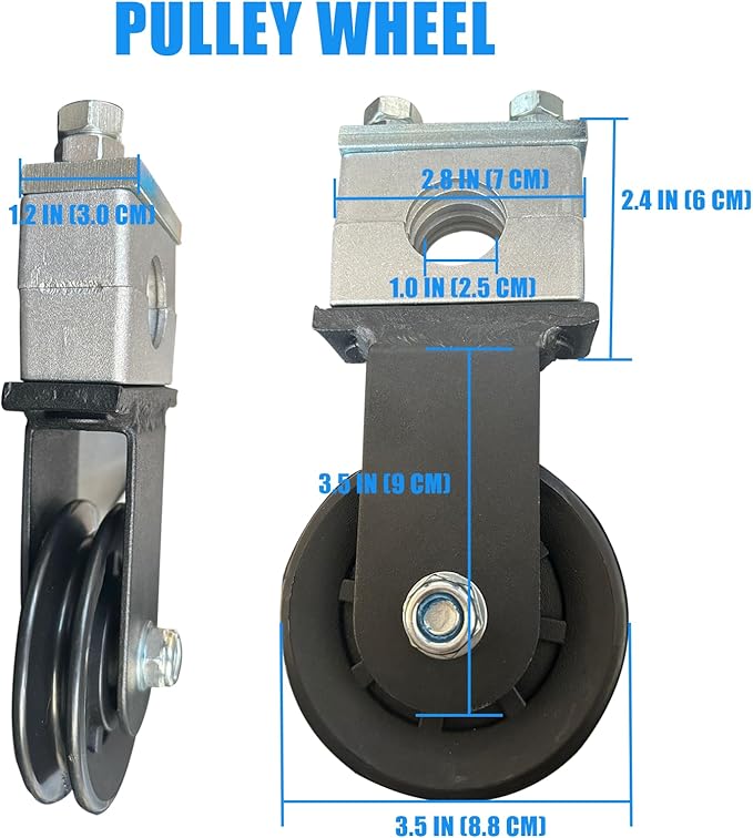 - Great build quality:KORIKAHM gym cable pulley is reliable and in high quality. The U mounting bracket is made of heavy-duty steel. And the wheel is made of high-density plastic which is not easy to break. The load bearing of this single pulley is 220lb.