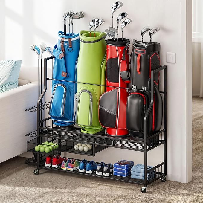 - Optimal Golf Organizing: Treasure your equipment and enjoy better game time! Our 4 golf bag organizer for garage features large, practical, and well-thought-out sections, ensuring everything is neatly placed for instant access