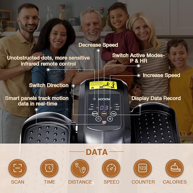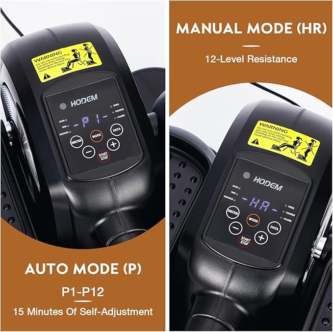 - 2-IN-1 & Automatic or Manual Mode: This mini under desk elliptical allows you to choose the mode freely, with automatic (P/P1-P12) and manual modes(HR/01-12) for your choice. The pedals can be turned back and forth to move, adjust the speed according to your preference and target different muscles.